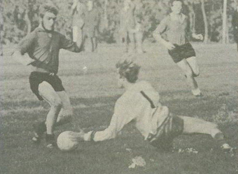 SNS-Satelliet 3-0: triomf der zelfbeheersing (artikel komt uit september 1970) De strijd tussen de runners-up" SNS en Satelliet is voor de Stadse formatie op een schitterende 3-0 zege uitgelopen. Een zege die SNS vooral op zichzelf behaalde voor de zelfbeheersing die de Stadtenaars zichzelf oplegden tegen het steeds opnieuw provocerende Satelliet. Vorig seizoen nog liet NTVV zich meeslepen in het harde voetbal der gasten en aanvankelijk leek het er op dat SNS hetzelfde zou doen. Steeds harder werden de tackles en steeds genieperiger de duwtjes en SNS begon langzaam maar zeker van repliek te dienen. Dat was echter de opzet van Satelliet, die daar in het verleden al menig keer wel bij voer. In de rust kon echter de Stadse trainer weer voor de nodige rust zorgen toen de withemden zich na de hervatting niet meer lieten intimideren werden de kwaliteiten van de Satelliet al spoedig blootgelegd. Voorafgaande aan het derde doelpunt hadden enkele Satelliet-spelers het zo druk met debatteren, o.a. met de scheidsrechter, dat de watervlugge rechtsbuiten Wim van der Mey uit een vrijwel onmogelijke hoek 3-0 kon scoren. De rest van de tijd was SNS oppermachtig. Aanvankelijk zat er nog geen grote zege in want de krachten wogen vanaf het begin tegen elkaar op. Satelliet combineerde soms aardig maar verder dan de linie A. Braber, Fokker, Mellaard en Arensman kwamen de blauwwitten niet. Keeper Diepenhorst behoefde een enkele keer op te treden. Het Stadse middenveld-trio begon wat voorzichtig, maar naarmate de strijd vorderde werd de greep op het middenveld door Wout en Frans Mellaard, maar vooral door Diek Visser, steeds sterker. De Satelliet-achterhoede weerstond. voorlopig de acties van v.d. Mey, Marinus Braber en de links zowel als de recht opduikende Koos Mellaard. Oud wapen Toen Satelliet merkte dat het SNS ernst was greep het op een oud wapen terug. De acties werden steeds harder, de slidings tegen het onverantwoordelijke af elke SNS-er die iets probeerde te ondernemen ging tegen het gras. SNS betaalde prompt met gelijke munt en de goed leidende scheidsrechter moest menig keer vermanend tussenbeide komen. De concentratie bij beide elftallen was in die periode ver te zoeken. Langzamerhand ging SNS aan een licht veldoverwicht bouwen waarbij Braber en v.d. Mey wat kansjes kregen, maar steeds opnieuw door de gasten werden gedwarsboomd. Na vijfentwintig minuten was het dan toch raak toen Marius Braber een voorzet van rechts benutte (1-0) Na dit doelpunt werd het nog wat forser maar opnieuw besloot. Dit werd echter wegens vermeend buitenspel afgekeurd. Onbeantwoord Na de hervatting speelde SNS veel rustiger en daardoor ook beter. Het harde spel van Satelliet bleef nu vrijwel onbeantwoord, omdat SNS zich voornamelijk bezig hield met.. voetbal. In de tiende minuut was het de op links opgedoken rechtsbuiten van der Mey die doorbrak, snel naar binnen kwam, op het laatste moment nog een tegenstander van zich afschudde en raak schoot (2-0). De tegenstanders gaven zich nog niet gewonnen maar duidelijk sloop de onzekerheid in de blauwwitte gelederen binnen. SNS had nu stevig het heft in handen, vooral dank zij een sterke middenveldbezetting, waarin Diek Visser zich steeds beter ging thuis voelen. De jeugdige M. Braber mocht gaan rusten en op zijn plaats kwam M. v.d. Boogert. Juist op dat moment had van der Mey zich nogmaals langs zijn directe bewaker gewerkt en uit een zeer moeilijke hoek tekende hij 3-0 aan. Vanaf dat moment was er eigenlijk nog maar één elftal dat echt voetbalde. Koos Mellaard en Wim van der Mey, goed vanuit het middenveld gelanceerd, trokken er regelmatig van tussenuit maar werden evenzovele malen neergehaald. Zelfs rechterverdediger Cees Arensman liet zich in de aanval zien. Hoewel er nog wel wat kansjes waren om de voorsprong te vergroten bleven meer doelpunten uit, wat echter de verheugde Stadse supporters een zorg was. De Satelliet-spelers konden alleen met hun longen vol frisse lucht de reis naar Vlaardingen aanvangen. Opstelling SNS: doel; P. Diepenhorst: achter; C. Arensman, A.W. Mellaard, R. Fokker en A. Braber. midden; W. Mellaard, Fr. Mellaard en D. Visser: voor; W. van der Mey, M. Braber (M. v, d. Boogert) en K. Mellaard